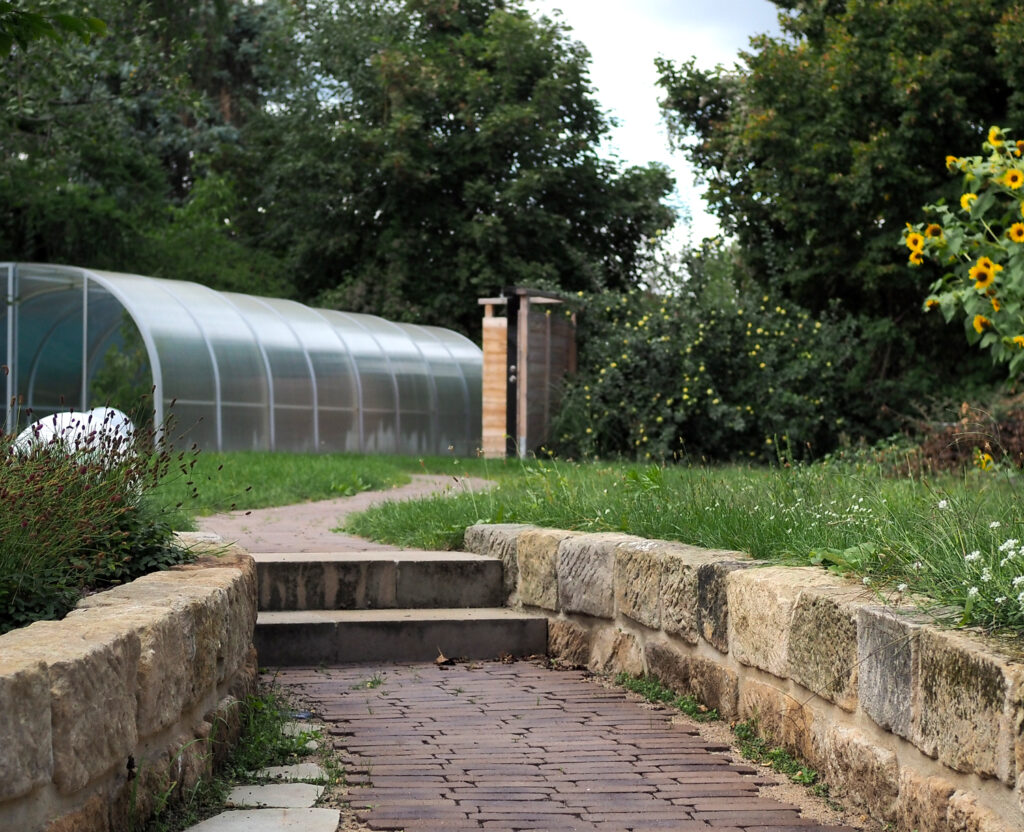 Der Garten ist ein Spiegelbild der Geschichte und Kultur dieses idyllischen Dorfensembles. Während die Natursteinmauern aus regionales Sandstein den Garten gliedern, führt der Klinkerweg Sie auf eine Reise durch diese grüne Oase.